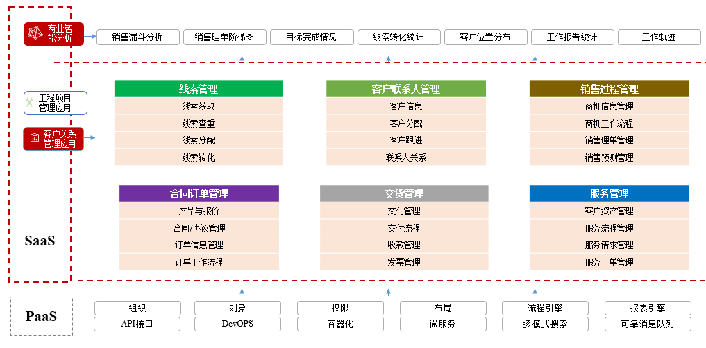 紅圈 CRM+是一款集合了工程項目管理功能和客戶關(guān)系管理功能的 SaaS 產(chǎn)品,以自有底層 PaaS 平臺為依托,以業(yè)務(wù)實踐經(jīng)驗為指導(dǎo)而構(gòu)建。產(chǎn)品以助力企業(yè)級客戶提效率、降風(fēng)險、控成本、管過程、增利潤為核心價值,能夠?qū)崿F(xiàn)在工程項目管理和客戶關(guān)系管理領(lǐng)域不同功能模塊的靈活配置,滿足客戶的個性化需求。