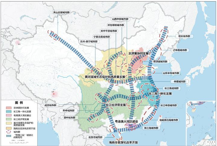 根據《“十四五”規劃綱要》,今后將形成“兩橫三縱”城鎮化戰略格局: